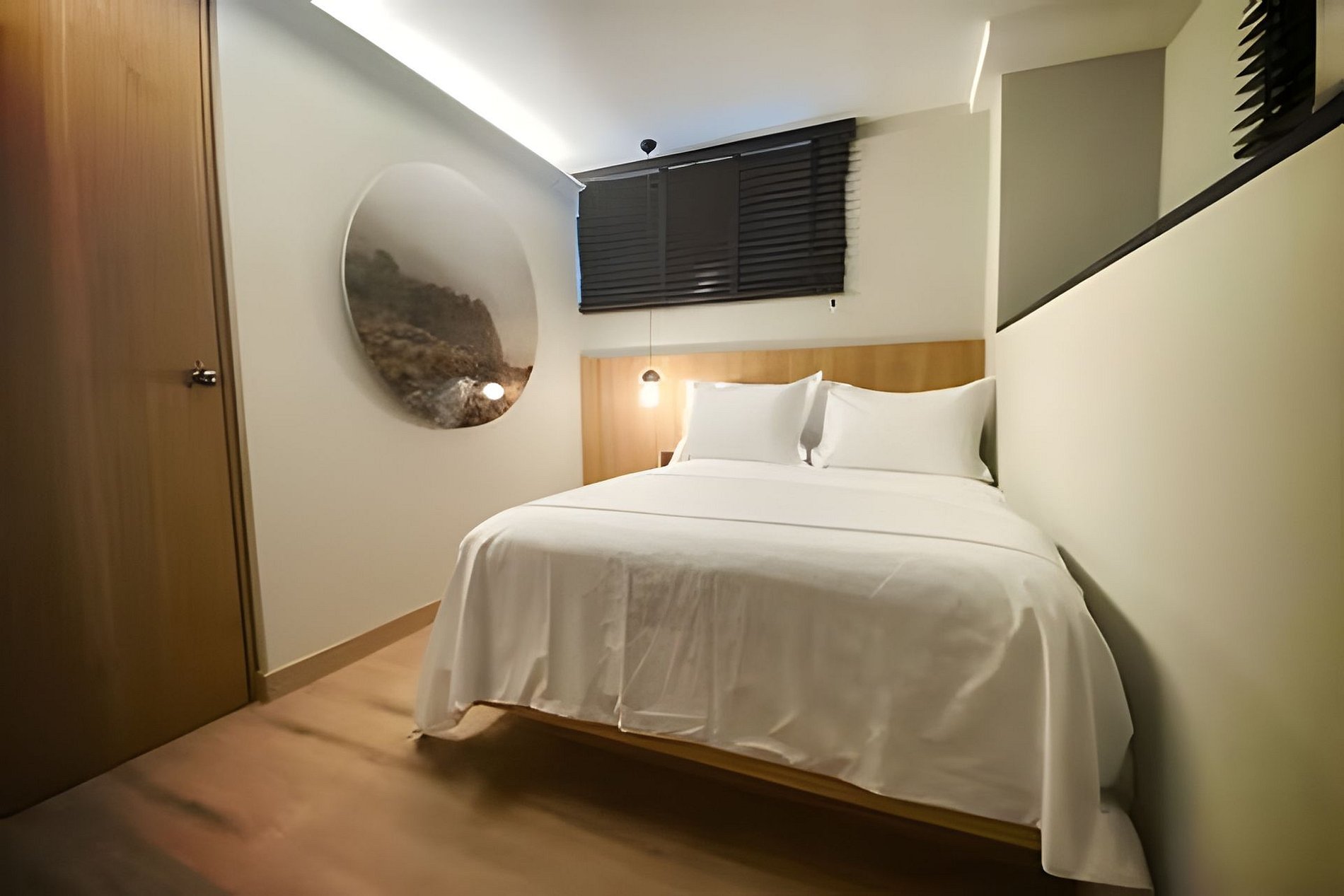 RECINTO ROMA Boutique Suites set in a 1920's historic building on beautiful tree-lined Tabasco Street in Colonia Roma. The place offers a mix of cosmopolitan design with a twist of Mexican style like the use of volcanic stone, hardwood floors, contemporary artwork and custom furniture. Xitle, although our smallest room, features a full-size bed, WIFI, Nespresso coffee maker, Smart HD TV and private bathroom. This suite is located in a semi-basement, you will have windows at street level.