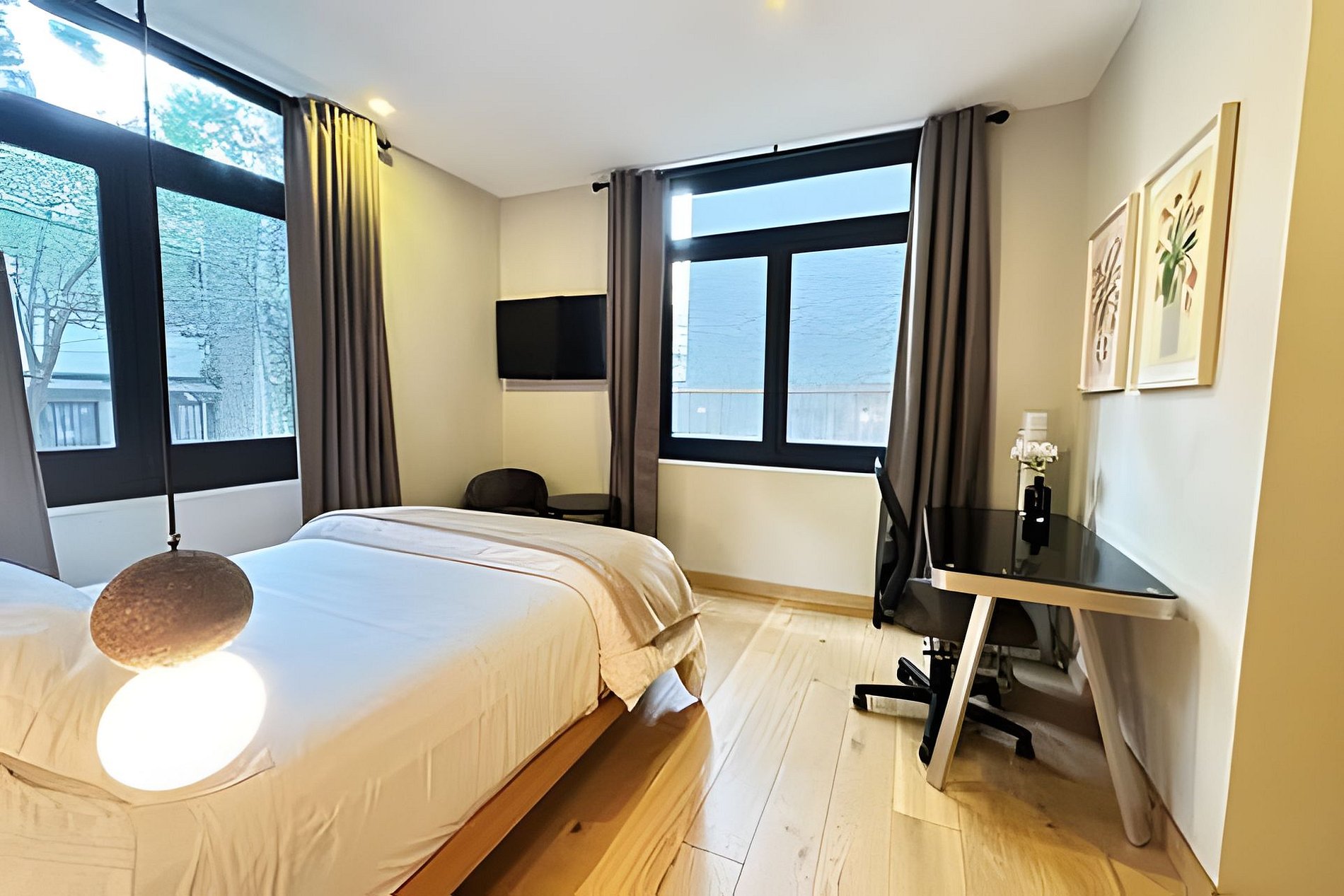 RECINTO ROMA Boutique Suites is set in a 1920's historic building on beautiful tree-lined Tabasco Street in Colonia Roma. The place offers a mix of cosmopolitan design with a twist of Mexican style like the use of volcanic stone, hardwood floors, contemporary artwork and custom furniture. Tlaloc is full of natural light, Queen size bed, WIFI, Smart HD 49" TV and private bathroom. All details designed to make your stay comfortable and unique. We follow sanitization COVID protocols.